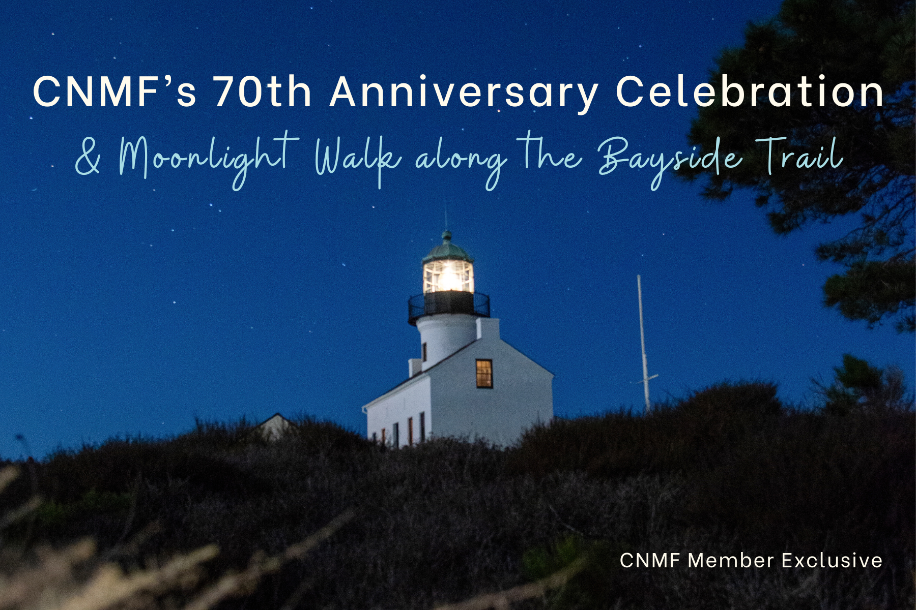 Join CNMF as we celebrate 70 years of support for Cabrillo National Monument with a guided moonlight walk along the Bayside Trail. Enjoy the illuminated Old Point Loma Light House at night and a very special cake designed for the occasion!
